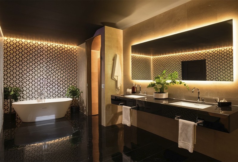 Акцентируйте внимание на ярких аксессуарах, зеркалах с подсветкой или стенах с элементами светящихся рисунков. Это позволит превратить обычную ванную комнату в настоящий арт-объект.