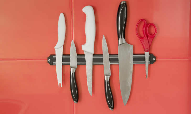 Магниты для ножей: прикрепите магнитную ленту к стене, чтобы хранить ножи в удобном и безопасном месте.