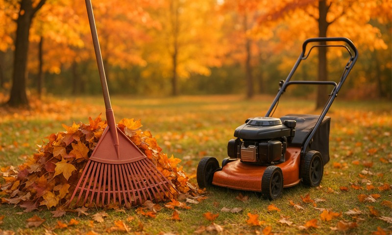 Полностью очистите газонные покрытия и цветники от опавших листьев, используя грабли различной ширины и садовый пылесос для труднодоступных мест