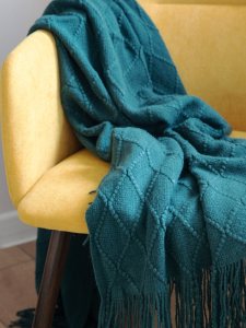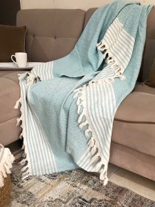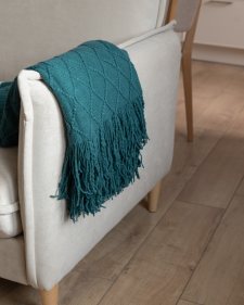Плед-покрывало 170х130 см вязаный, акрил, зеленое